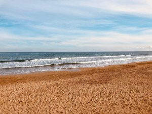 Once home, I’m now starving. I have two choices: eat the dodgy packet soup that’s been in the cupboard since who-knows-when or walk 20 minutes to one of the locals. I chose the better option and took a stroll down the beach to one of the seafront restaurants. It was quiet, I ate an absolutely fabulous lunch while I watched a family brave the cold of the November sea, the surfers battle the waves, all while people around me smoked like troupers. I was upwind.